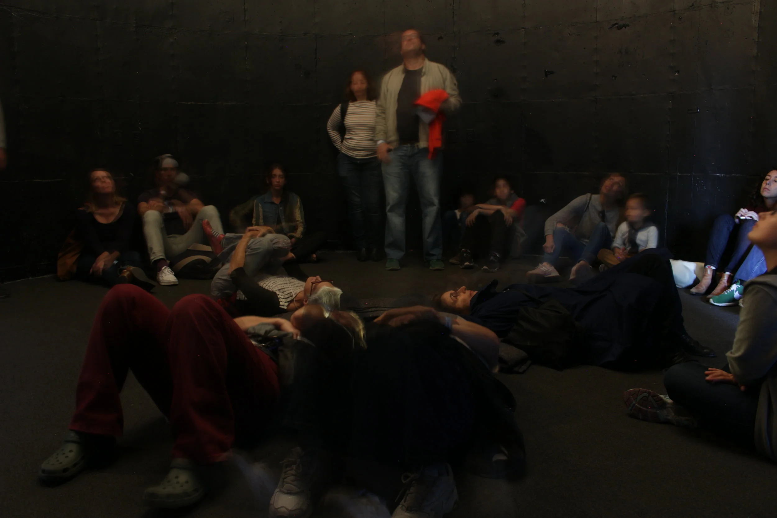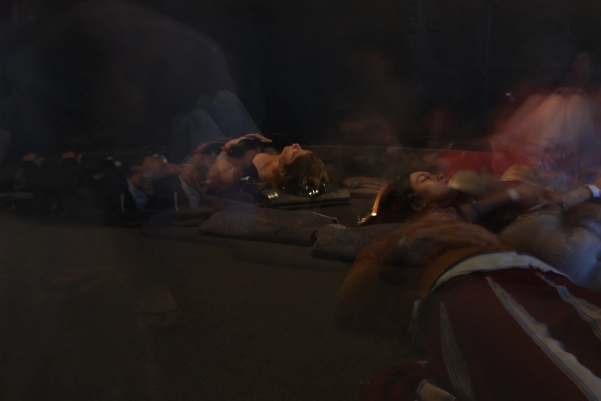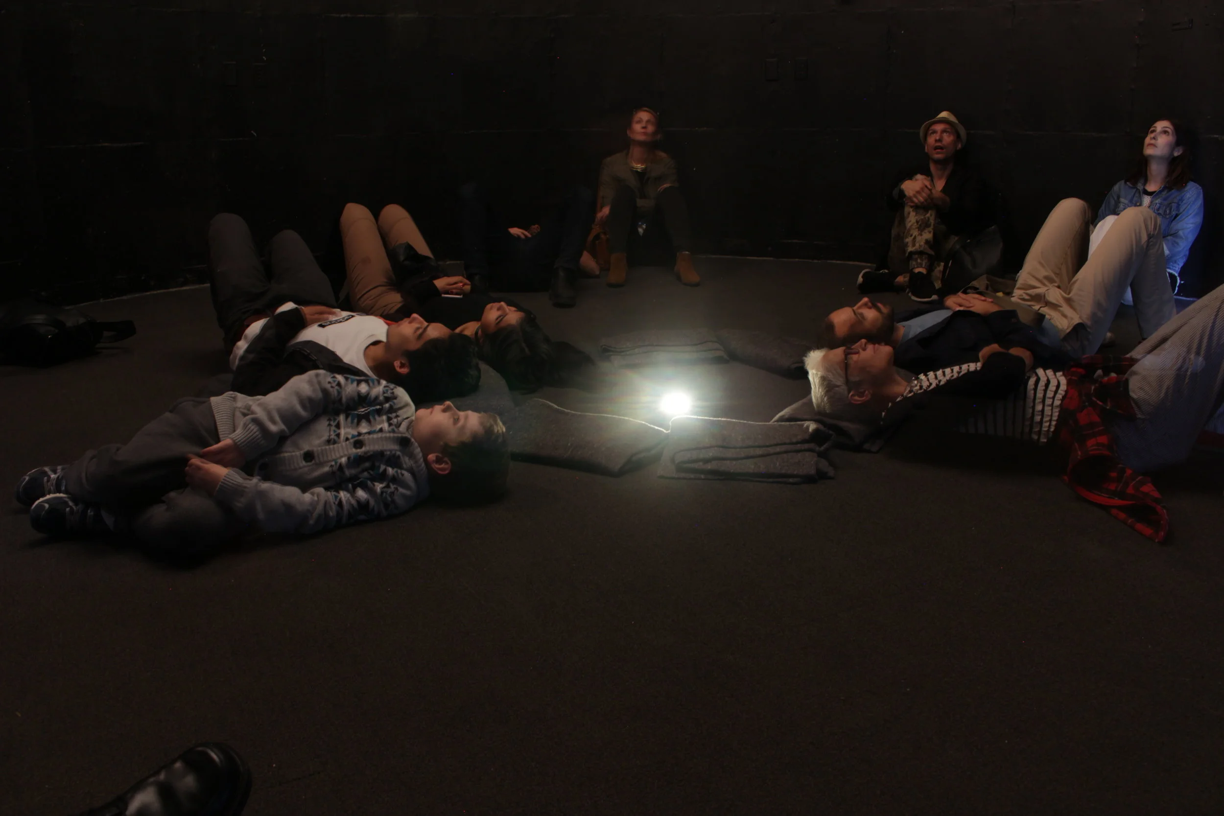 Textiles, light, carpet, blankets, fan, single track audio score (19 minute loop)